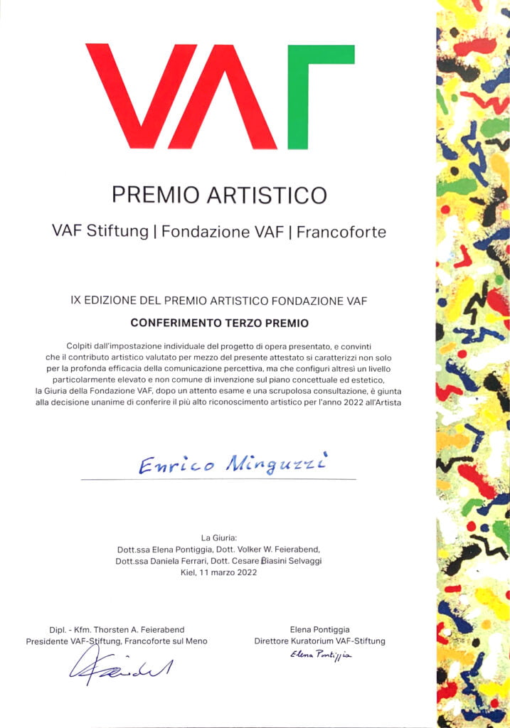This is the third time I have participated in the inauguration of the exhibition and the award ceremony. The first time was at the MART in Rovereto, but on that occasion, I participated as a guest and son of the Founder of the eponymous Foundation, Dr. Volker W. Feierabend. While, for the second and third time, as President and Member of the Board of Directors of the VAF Foundation and, as I am sure you will remember, as an attentive audience, still as the son of the Founder.